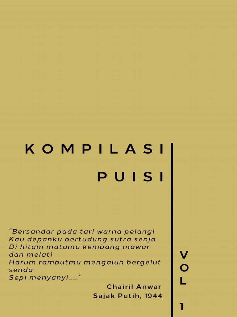 Buat tunanganku mirat bersandar pada tari warna pelangi kau depanku bertudung sutra senja. Meriak muka air kolam jiwa dan dalam dadaku memerdu lagu menarik menari seluruh aku. Gadis itu bertudung sutra diwaktu haru. Kau depanku bertudung sutra senja. Sepi menyanyi, malam dalam mendoa tiba meriak muka air kolam jiwa dan dalam dadaku memerdu lagu menarik menari seluruh aku. Bersandar pada tari warna pelangi kau depanku bertudung sutra senja di hitam matamu kembang mawar dan melati harum rambutmu mengalun bergelut senda. Bersandar pada tari warna pelangi kau depanku bertudung sutra senja di hitam matamu kembang mawar dan melati harum rambutmu mengalun bergelut senda. Sepi menyanyi, malam dalam mendoa tiba. Puisi ini masih terikat dengan persajakan, pengaturan larik pada setiap bait, jumlah kata pada setiap larik merupakan puisi lama yang biasanya digunakan pada saat upacara adat atau keagamaan. Kini, puisi lebih bebas dan tidak terikat pada rima. Sepi menyanyi,malam dalam mendoa tiba. Bersandar pada tari warna pelangi. Adapun puisi chairil anwar sebenarnya ada 96 karya.